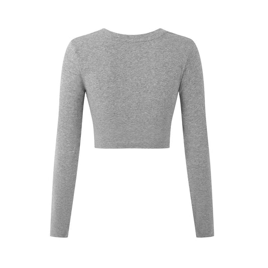 Round neck exposed navel short long sleeved pullover t-shirt