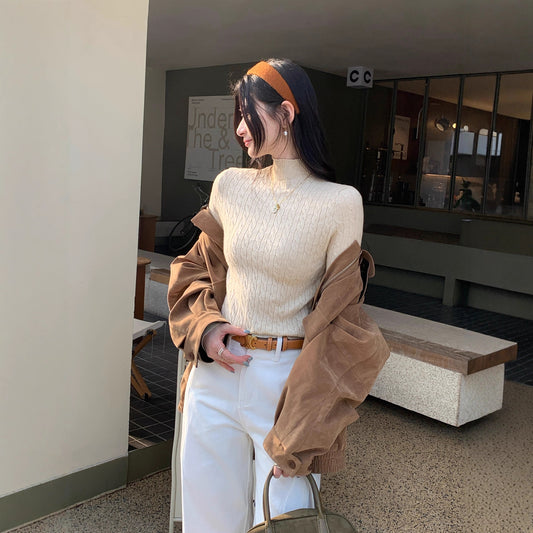 High-Neck Knit Sweater for Women, Slim Fit, Long Sleeve