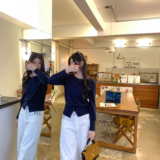 Round neck single breasted long sleeved top