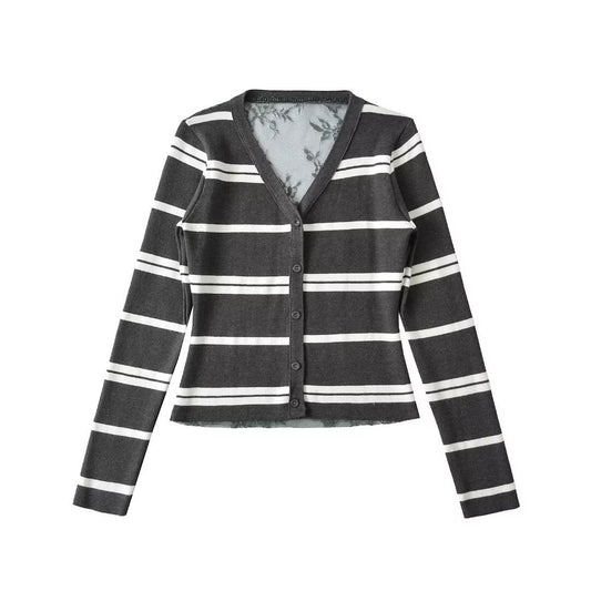 Sold outLace striped cardigan top